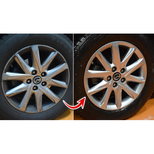 Spray de Stipt Iron Remover op de velgen, lakwerk en deurstijlen.