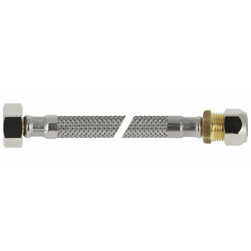 Deze flexibele aansluitslang is geschikt voor het flexibel koppelen van waterleidingen of kranen. Aansluitmaat 3/8" binnendraad x 12mm knelkoppeling.