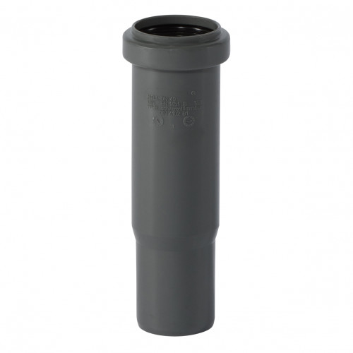HTsafe-mof van vlamvertragend polypropyleen met steekmof en drievoudige afdichtlip voor afvalwaterleidingen binnen gebouwen volgens DIN EN 1451. Geschikt voor warm, koud en agressief afvalwater