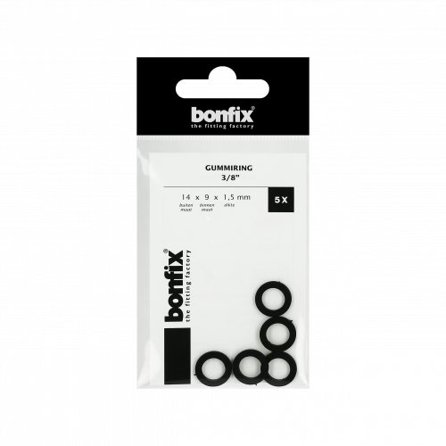 5x rubber / gummi afdichtring 3/8" (14 x 9 x 1,5 mm). Gummi-ringen zijn een veelgebruikt type afdichtingselement dat wordt gebruikt om twee oppervlakken met elkaar te verbinden. Ze zijn gemaakt van een basis rubber, dat druk kan weerstaan en zo lekkages voorkomt. Deze Gummi-ringen zijn gemaakt van een combinatie van natuurrubber (NR) en styrene butadien rubber (SBR). Dit is een veelgebruikt type rubber dat een goede weerstand heeft tegen water en andere vloeistoffen. Gummi-ringen van zwart rubber hebben een temperatuurbereik van -20°C tot +70°C.