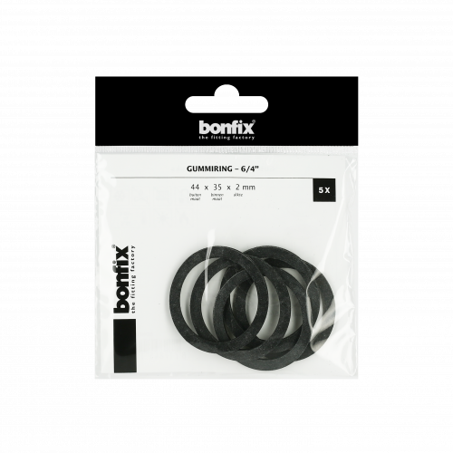 5x rubber / gummi afdichtring 6/4" (44 x 33 x 2 mm). Gummi-ringen zijn een veelgebruikt type afdichtingselement dat wordt gebruikt om twee oppervlakken met elkaar te verbinden. Ze zijn gemaakt van een basis rubber, dat druk kan weerstaan en zo lekkages voorkomt. Deze Gummi-ringen zijn gemaakt van een combinatie van natuurrubber (NR) en styrene butadien rubber (SBR). Dit is een veelgebruikt type rubber dat een goede weerstand heeft tegen water en andere vloeistoffen. Gummi-ringen van zwart rubber hebben een temperatuurbereik van -20°C tot +70°C.