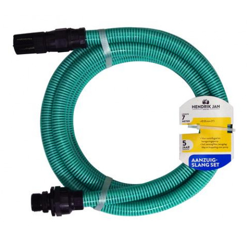 De Hendrik Jan aanzuigslang past op een beregeningspomp voor de watertoevoer in de tuin. Een 4-delige set met een aanzuigslang (7 meter), aanzuigfilter, terugslagklep en koppeling voor pomp.