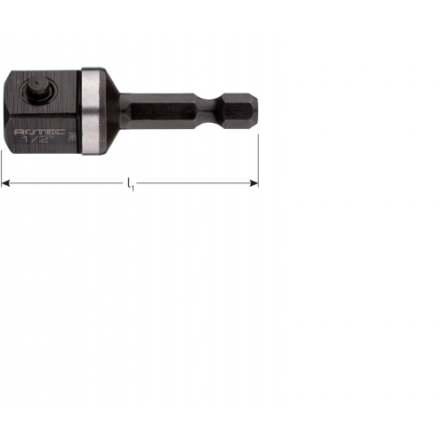 ADAPTER 1/4" 6-KANT NAAR 1/2" 4-KANT L=50MM
