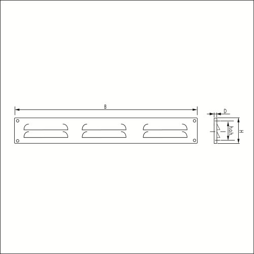 Schoepenrooster 370 x 40 mm, vervaardigd van aluminium, met omgezette rand, opbouw.