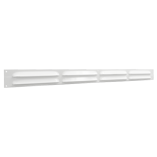 Schoepenrooster wit 500 x 40 mm, vervaardigd van blank aluminium, vlakke uitvoering, opbouw.