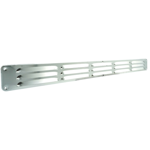 Schoepenrooster 650 x 65 mm, vervaardigd van aluminium, met omgezette rand, opbouwt.