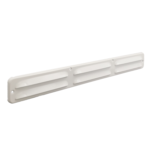 Schoepenrooster wit 370 x 40 mm, vervaardigd van aluminium, met omgezette rand, opbouw.