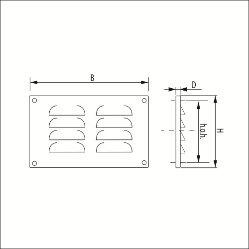 Als buitenrooster, regeninslagwerend, voor toe- en afvoer van lucht.