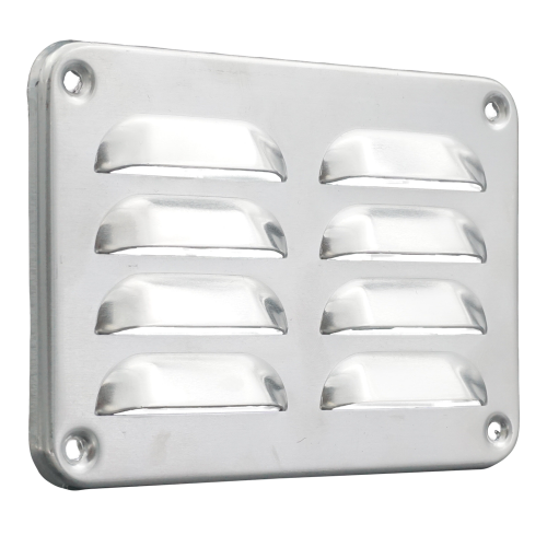 Schoepenrooster 130 x 90 mm, vervaardigd van aluminium, met omgezette rand, opbouw.