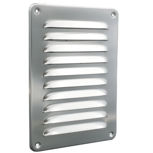Schoepenrooster 150 x 215 mm, vervaardigd van aluminium, met omgezette rand, opbouw.
