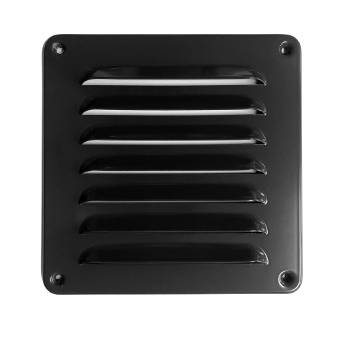 Schoepenrooster zwart 155 x 155 mm, vervaardigd van aluminium, met omgezette rand, opbouw.