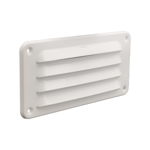 Schoepenrooster wit 90 x 180 mm, vervaardigd van aluminium, met omgezette rand, opbouw.