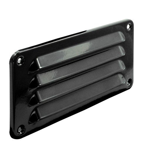 Schoepenrooster zwart 90 x 180 mm, vervaardigd van aluminium, met omgezette rand, opbouw.