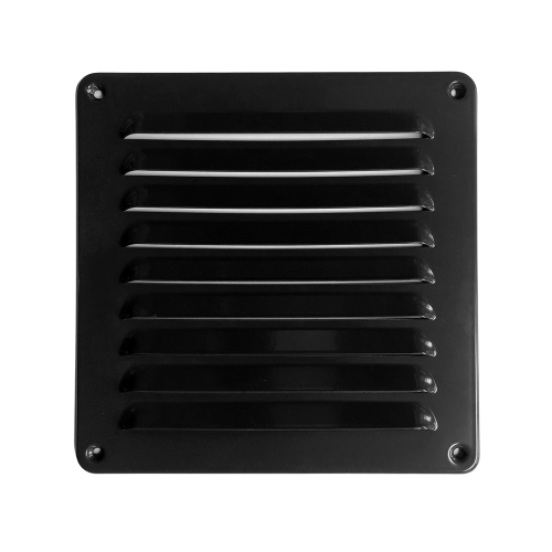 Schoepenrooster zwart 195 x195 mm, vervaardigd van aluminium, met omgezette rand, opbouw.