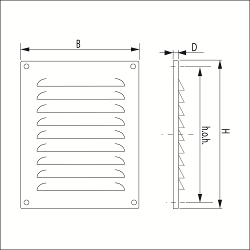 Als buitenrooster, regeninslagwerend, voor toe- en afvoer van lucht.
