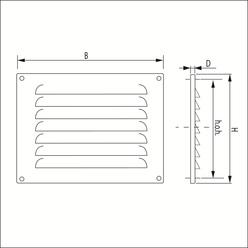 Als buitenrooster, regeninslagwerend, voor toe- en afvoer van lucht.