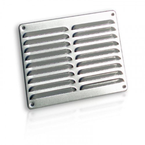 Schoepenrooster 245 x 195 mm, vervaardigd van aluminium, met omgezette rand, opbouw.