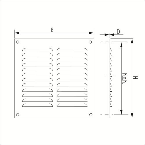 Als buitenrooster, regeninslagwerend, voor toe- en afvoer van lucht.
