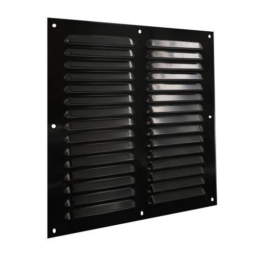 Schoepenrooster zwart 300 x 300 mm, vervaardigd van aluminium, vlakke uitvoering, opbouw.