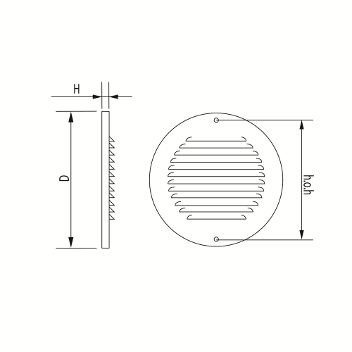 Schoepenrooster rond 150 mm, vervaardigd van aluminium, met omgezette rand, opbouwt.
