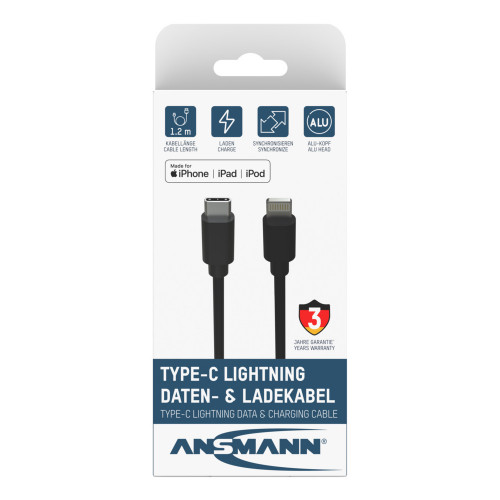 ANSMANN OPLAADKABEL USB-C NAAR APPLE LIGHTNING 120CM
