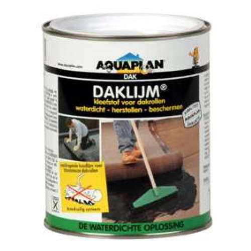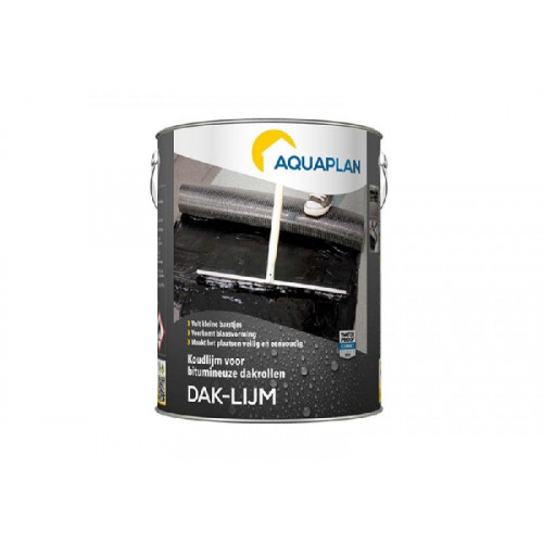 Aquaplan daklijm / koude kleefstof is een hoogwaardige bitumineuze kleefstof extra verstevigd met elastische kunststofvezels voor een vakkundige en snelle verlijming van bitumineuze dakrollen zonder gebruik te maken van brander of warm bitumen.