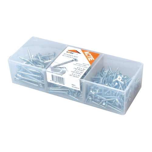 Assortimentverpakking met 3 verschillende maten spaanplaatschroeven platkop verzinkt staal pozidrive.