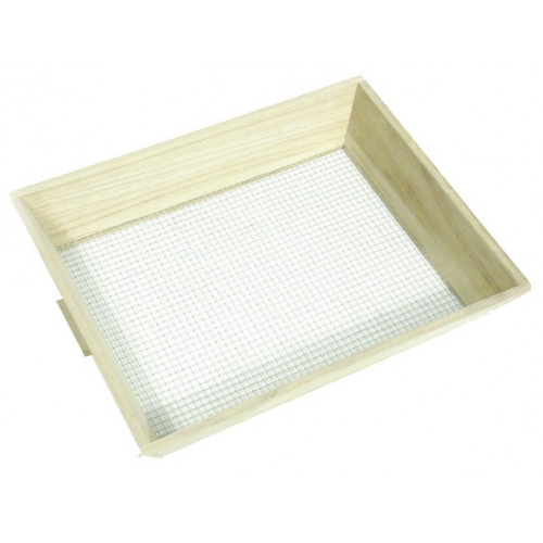 Met deze zeef werd na het stoken van kolen de as gezeefd op de aanwezigheid van restkooltjes. rechthoekig toelopend houten kader gemaakt van vier aan elkaar getimmerde trapeziumvormige plankjes waarover een grofmazige zeef van ijzergaas gespannen zit. aan de zijkanten twee kleine handvatten om de zeef te schudden.