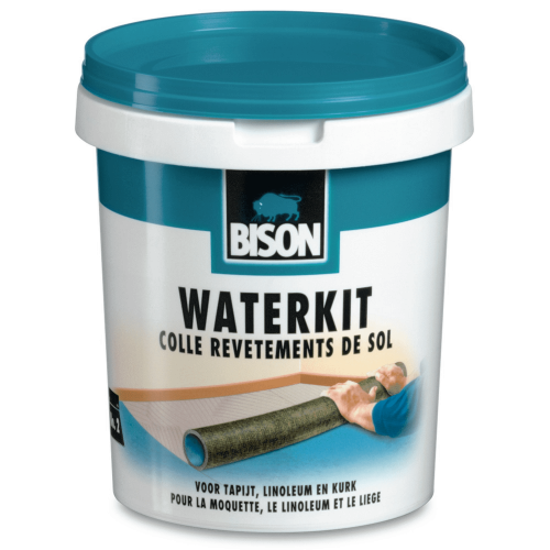 Bison waterkit is een kant-en-klare dispersielijm voor vloerbedekking, linoleum en wandkurk. Lijm op waterbasis.