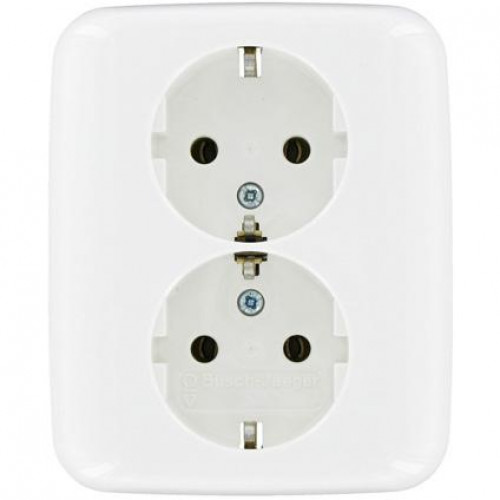Busch-Jaeger SI wandcontactdoos 2-voudig met randaarde wit. Met deze wandcontactdoos uit de SI serie van Busch-Jaeger kan eenvoudig een 230V aansluitpunt met randaarde worden gecreëerd. Dit dubbele stopcontact is ideaal om 2 aansluitpunten te creëren waar slechts 1 inbouwdoos te vinden is.