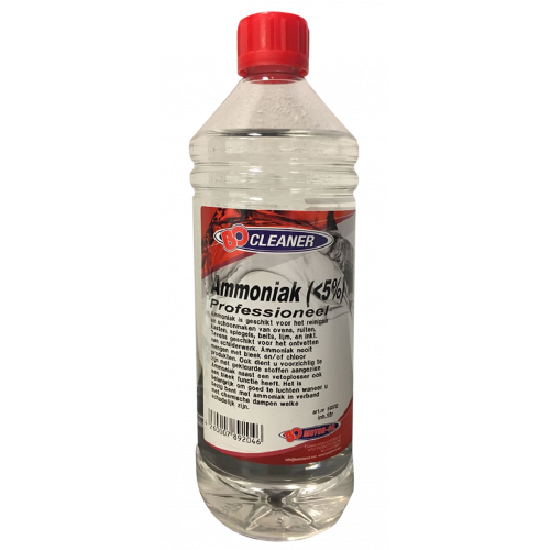 Bo ammoniak 5% oplossing 1 liter. Ammonia is een oplossing van het gas ammoniak in water. Deze oplossing wordt in het huishouden als schoonmaakmiddel gebruikt. Geschikt om oude verf voor te behandelen zodat eroverheen geschilderd kan worden. De schoonmakende werking komt tot stand doordat oude verflagen vaak bedekt zijn met een laagje vettige aanslag dat voor een groot deel uit vetzuren bestaat. De vetzuren lossen op en de vettige stoffen die geen vetzuur zijn, lossen op in de ontstane zeep.