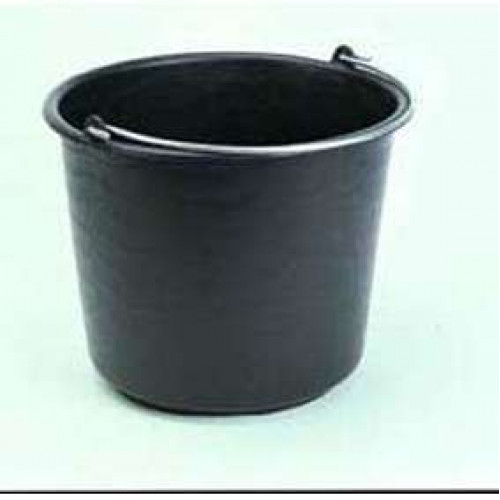Zwarte kunststof bouwemmer 20 liter met verzinkte draagbeugel.