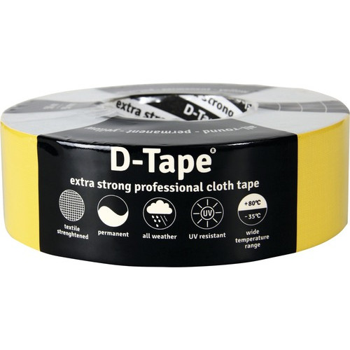 D-Tape® is onder vrijwel alle omstandigheden een uitstekende tape. Zowel bij zeer hoge of uiterst lage temperaturen houdt D-Tape® alles bij elkaar. De tape is bovendien weer- en UV-bestendig.De polyethyleen toplaag maakt D-Tape® bestand tegen schuren, water, vocht en oppervlakkig contact met de meeste oplosmiddelen. De krachtige rubber lijmlaag zorgt voor een betrouwbare hechting, óók op lastige ondergronden zoals hout of stucwerk. Er zijn 3 kwaliteiten D-Tape®: