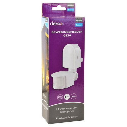 Detec GZ10 bewegingsmelder outdoor wit, draaibaar en kantelbaar met IP44 certificering. Deze bewegingsmelder heeft een detectiehoek van 180 graden. Geschikt voor donkere plekken in uw tuin of bij de schuur. Vangt beweging op tot maximaal 12 meter afstand en is ook in te stellen op schemering.