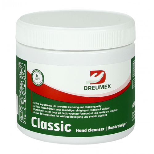Deze handreinigingsgel is ideaal voor de middelzware industrie. Dreumex Classic is speciaal ontwikkelt om vervuilingen zoals olie, vet, smeer en bitumen van de huid te verwijderen. De handreinigingsgel is dan ook zeer geschikt voor gebruik in autogarages, de metaalindustrie en in de (wegen) bouw. De zeep bevat een 100% natuurlijke microkorrel welke huidvriendelijk zijn, een aangenaam handgevoel geven en een uitstekende reinigingskracht hebben.