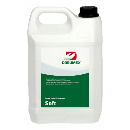 Dreumex Soft is een vloeibare crèmezeep 5 liter voor gebruik in wasruimten. Dreumex Soft heeft een aangename geur en schuimt rijkelijk.