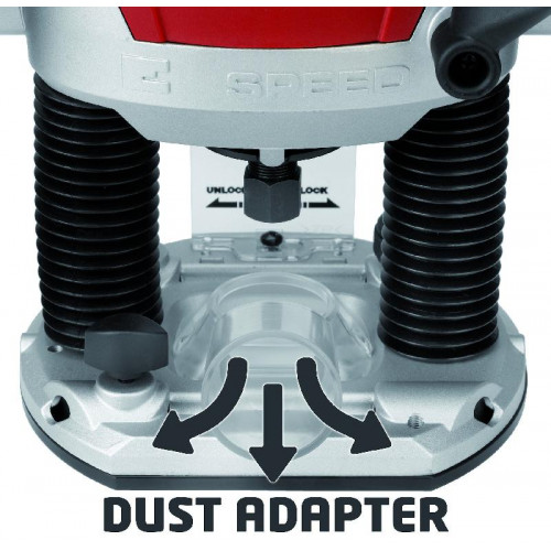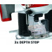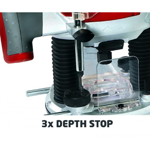 De Einhell TE-RO 1255 E is een krachtige bovenfrees, die je in staat stelt om de meest veeleisende freeswerkzaamheden op een nauwkeurige manier uit te voeren. De machine kan onder meer gebruikt worden in combinatie met massief hout, multiplex en vezelplaten in huis, in de garage of op een werkplaats. Een vooraf in te stellen freesdiepte bevordert een nauwkeurige manier van werken met deze bovenfrees. Daarbij kan de afstelling van deze machine met de fijninstelling verder geoptimaliseerd worden. Krachtige bovenfrees voor optimaal resultaat Deze bovenfrees is voorzien van een krachtige 1200 Watt motor, die het mogelijk maakt om de meest uiteenlopende freeswerkzaamheden op een nauwkeurige wijze uit te voeren. Voorafgaand aan de freeswerkzaamheden is het met de geïntegreerde regelelektronica mogelijk om het toerental in te stellen, zodat deze aansluit bij het materiaal waarmee je werkt tijdens een klus. Instelbare freesdiepte Om een nauwkeurige manier van werken te bevorderen kun je de freesdiepte gemakkelijk instellen via de traploze revolveraanslag. De fijninstelling op de machine biedt de mogelijkheid om de freesdiepte nog verder te optimaliseren. Zo kunnen optimale resultaten worden behaald. Snel wisselen van freesplaat De asvergrendeling op de machine maakt een snelle, moeiteloze wissel van de freesplaat mogelijk om snel weer aan de slag te kunnen. Door het evenwichtige ontwerp van de machine blijft deze in een veilige stand staan tijdens het wisselen van de freesplaat. Spantang Ook de spantang zorgt voor flexibiliteit, doordat hij de inzet van freesplaten met een schachtdiameter van 6 tot 8 millimeter mogelijk maakt. Veiligheid voorop Een kunststof tussenlaag aan de standvoet van de machine, ontziet het oppervlak van het werkstuk waarmee gewerkt wordt. Daarbij zorgt een spanenbord op de machine voor een veilige manier van werken tijdens verschillende freeswerkzaamheden. Ergonomische handgreep Met de ergonomisch vormgegeven soft grip handgreep, ligt de bovenfrees zeer comfortabel in de hand tijdens het uitvoeren van freeswerkzaamheden. Daarbij absorbeert de soft grip handgrip een deel van de trillingen van de freesmachine. Handige kabelclip Wanneer de werkzaamheden zijn afgerond, kun je de kabel opwikkelen en aan de kabelclip op de machine bevestigen. Zo is de machine in een handomdraai weer netjes opgeborgen. Inbegrepen accessoires Standaard worden een cirkel, parallelle aanslag en kopieerhuls met de bovenfrees meegeleverd. Zo heb je alle benodigdheden om direct aan de slag te kunnen gaan met deze bovenfrees. De belangrijkste specificaties van de machine: - Vermogen: 1200W - Aansluiting: 230 V / 50 Hz - Freesdiepte: 55mm - Elektronisch regelbaar toerental - Onbelast toerental: 11.000-30.000 t/min. - Voor vormfrees: max. 30mm - Geleverd inclusief: Spantang Ø6 en Ø8mm - Softgrip - Deze machine maakt deel uit van de Einhell Expert-productlijn - 2 jaar fabrieksgarantie