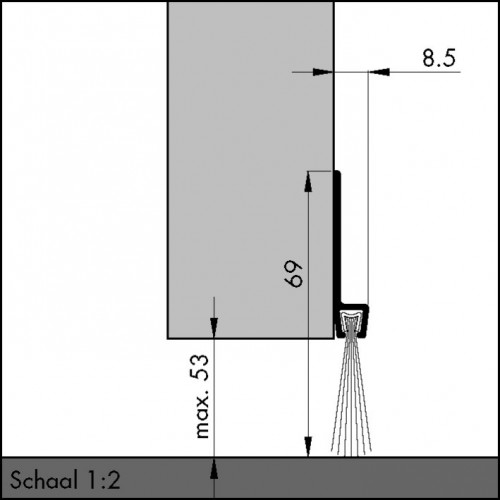 Ellen IBS-70 aluminium borstelprofiel voor plaatsing aan onderzijde deuren, schuif- en roldeuren.