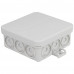 Aansluitdoos 85 x 85 x 37 mm, IP 55, getest conform DIN EN 60670 (VDE 0606) heeft 12 voorgesneden ingangen aan de zijkanten en 3 bodemingangen kunnen ook worden geboord. De bevestigingspunten zitten aan de buitenkant. Goedgekeurd voor montage op brandbare materialen zoals hout.