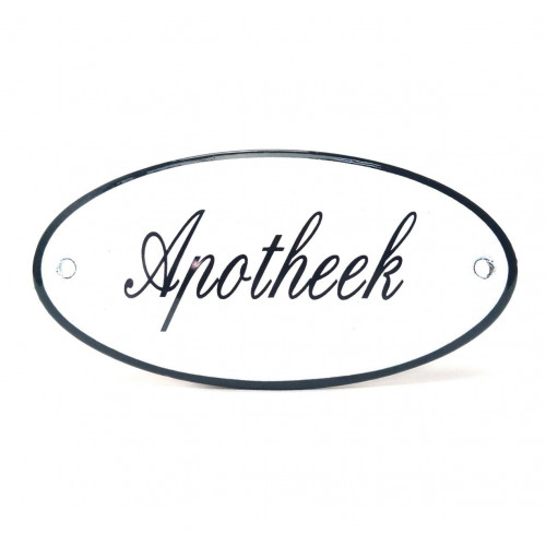 EMAILLE OVAAL NAAMBORD APOTHEEK 10X5CM