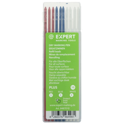 Expert Dry speciale navulstiften in een kunststof navuldoos met 10 stiften, verwijderbaar van glanzende oppervlakken.