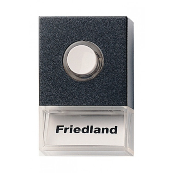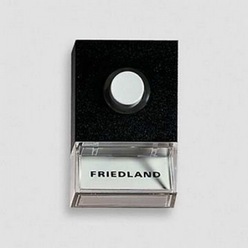 Friedland beldrukker Pushlite D723 zwart, met naamplaatje. Doorschijnende achterplaat en ring.