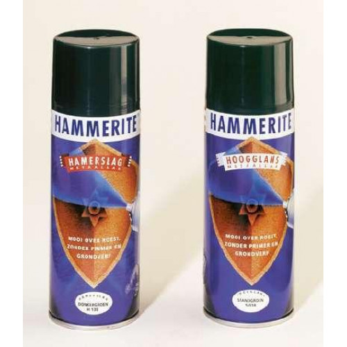 Hammerite is een metaallak die zonder primer of grondverf op roest kan worden aangebracht en direkt een goed eindresultaat geeft. Stopt het roestproces, is kras- en stootvast en is extreem waterafstotend. Decoratieve lakverf met hamerslag-effect op basis van synthetische harsen en sneldrogende oplosmiddelen. Mits goed voorbehandeld ook voor andere ondergronden geschikt.