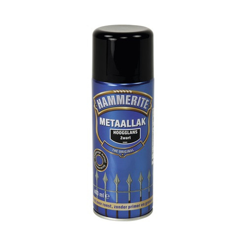 Hammerite direct over roest metaallak hoogglans zwart. Spuitbus van 400 ml.