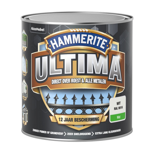 Hammerite Ultima is een beschermende premium metaallak. Deze hoogwaardige metaallak kan zonder primer of grondverf direct op alle metalen en over geroeste delen worden geschilderd. Biedt een langdurige bescherming tot 12 jaar.