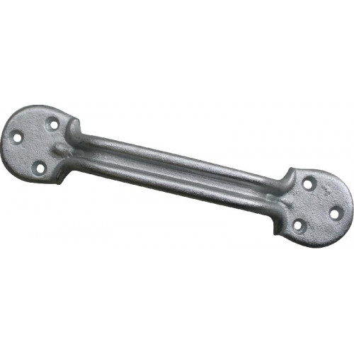 Hand- of deurgreep.Gegoten model, afwerking verzinkt.Traditioneel gebogen model.Opschroevend met 2 x 3 verzonken schroefgaten aan de voorzijde.