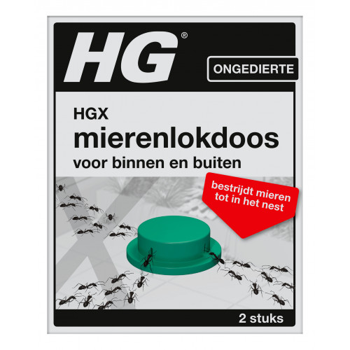 HGX mierenlokdoos is een uiterst effectieve manier om verlost te worden van mieren in huis, op het terras of in de tuin. Vanuit de mierenlokdoos nemen de mieren de werkzame stof mee naar het mierennest, waardoor zij in het nest gedood worden. De HGX mierenlokdoos is daarom een zeer schone methode om mieren te bestrijden en kan zowel binnen als buiten gebruikt worden.