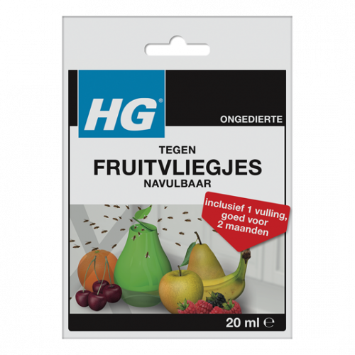Dé HG fruitvliegjesval tegen hinderlijke fruitvliegjes. Met name in de zomermaanden kunnen fruitvliegjes een ware plaag zijn. In deze periode van het jaar zijn etensresten of rijpend fruit namelijk zeer aantrekkelijk voor deze hinderlijke en zich snel voortplantende beestjes. Met de fruitvliegjes vanger van HG heeft u geen last meer van ongewenste fruitvliegjes in huis!