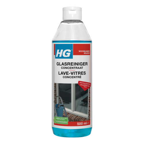 HG glasreiniger concentraat voldoet aan alle professionele eisen en zelfs meer, want het product is pH-neutraal. Dit betekent dat onze raamreiniger omliggende materialen (zoals; verf, lak en kunststof) niet aantast en bovendien heel mild is voor de handen. HG glasreiniger concentraat is zeer zuinig in gebruik, want een flacon van 500ml is goed voor tenminste 35 raamwasbeurten.