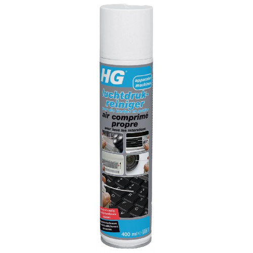 HG luchtdrukreiniger voor alle kiertjes en gaatjes verwijdert stof en andere losse vervuiling uit alle moeilijk bereikbare kiertjes en gaatjes waar een normale stofdoek of stofzuiger niet bij kan komen of geen effect heeft of schade zouden kunnen veroorzaken zoals bij toetsenborden, roosters en andere (ventilatie)openingen van computers en televisies, luchtroosters in auto’s of bijvoorbeeld de scheerkop(pen) van het scheerapparaat. Daarnaast is dit product ook uitstekend geschikt voor het veilig reinigen van oppervlakken die in principe niet aangeraakt mogen worden zoals lenzen, computer printplaatjes e.d.